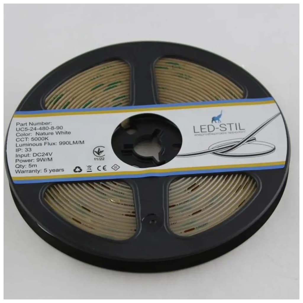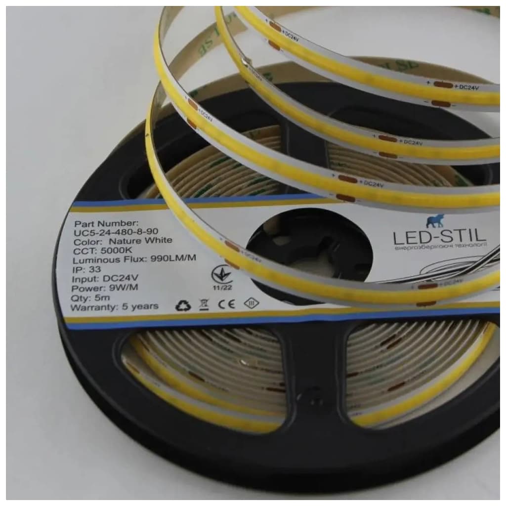 Світлодіодна стрічка LED-STIL 5000K 9 Вт/м COB 480 діодів IP33 24 Вольта 990 lm біле денне світло (UC5-24-480-8-90)