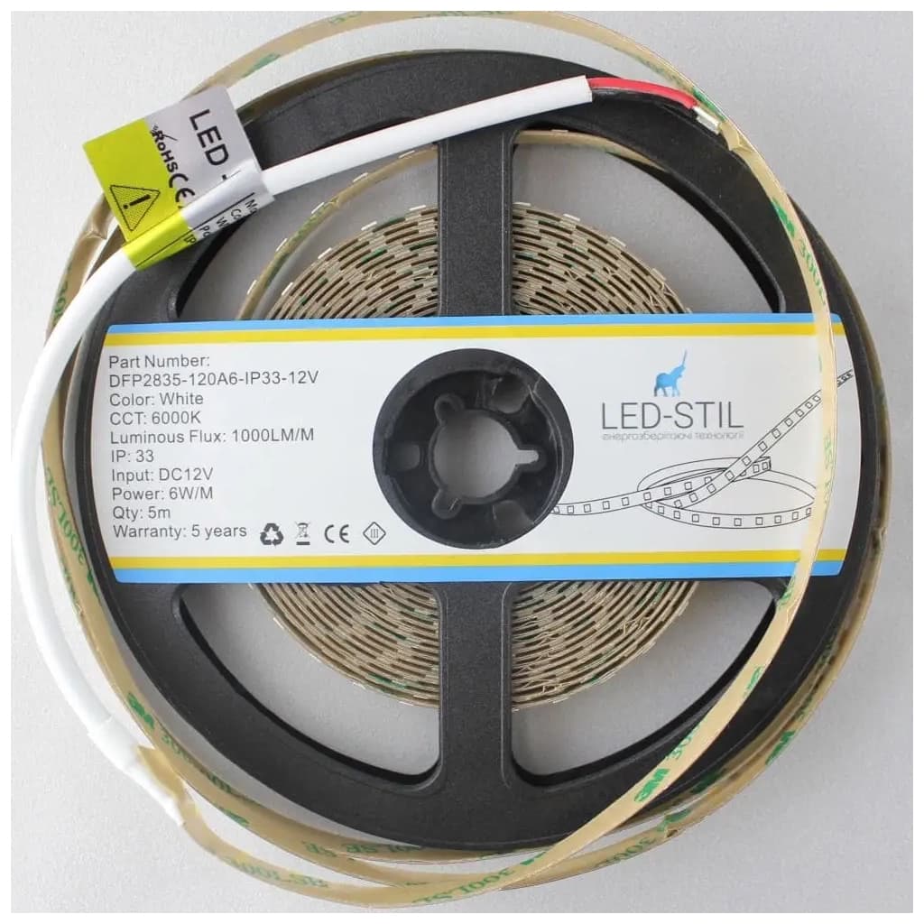 Світлодіодна стрічка LED-STIL 6000K 6 Вт/м 2835 120 діодів IP33 12 Вольт 950 lm холодне світло (DFP2835-120A6-IP33-12V)