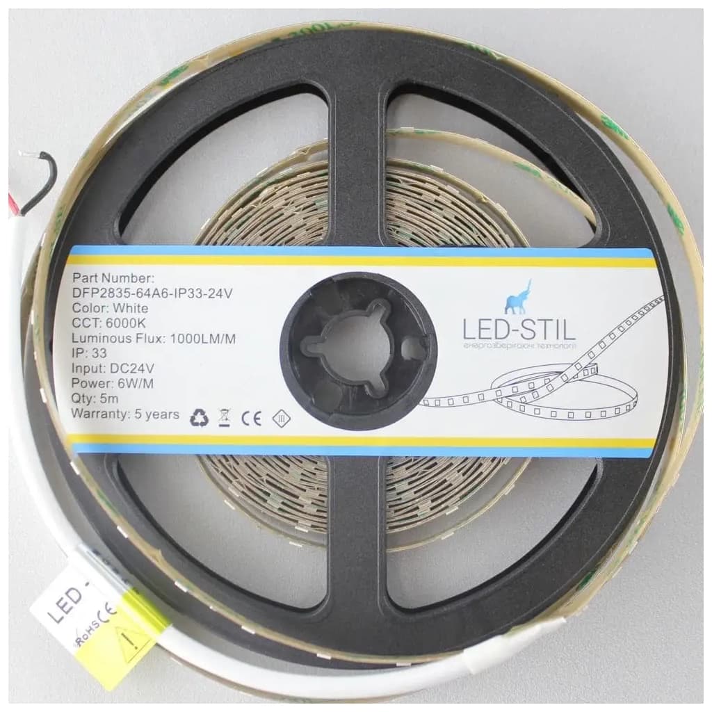 Світлодіодна стрічка LED-STIL 6000K 6 Вт/м 2835 64 діода IP33 24 Вольта 1000 lm холодне світло (DFP2835-64A6-IP33-24V)