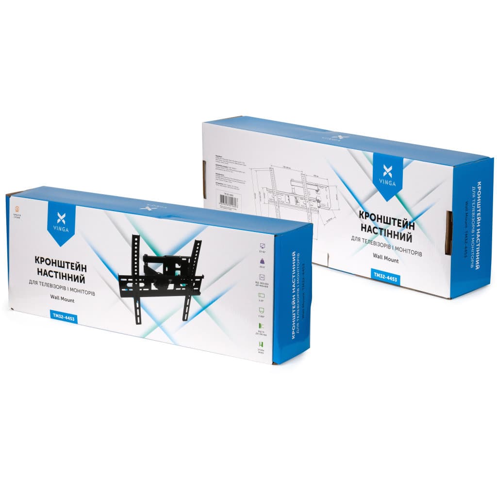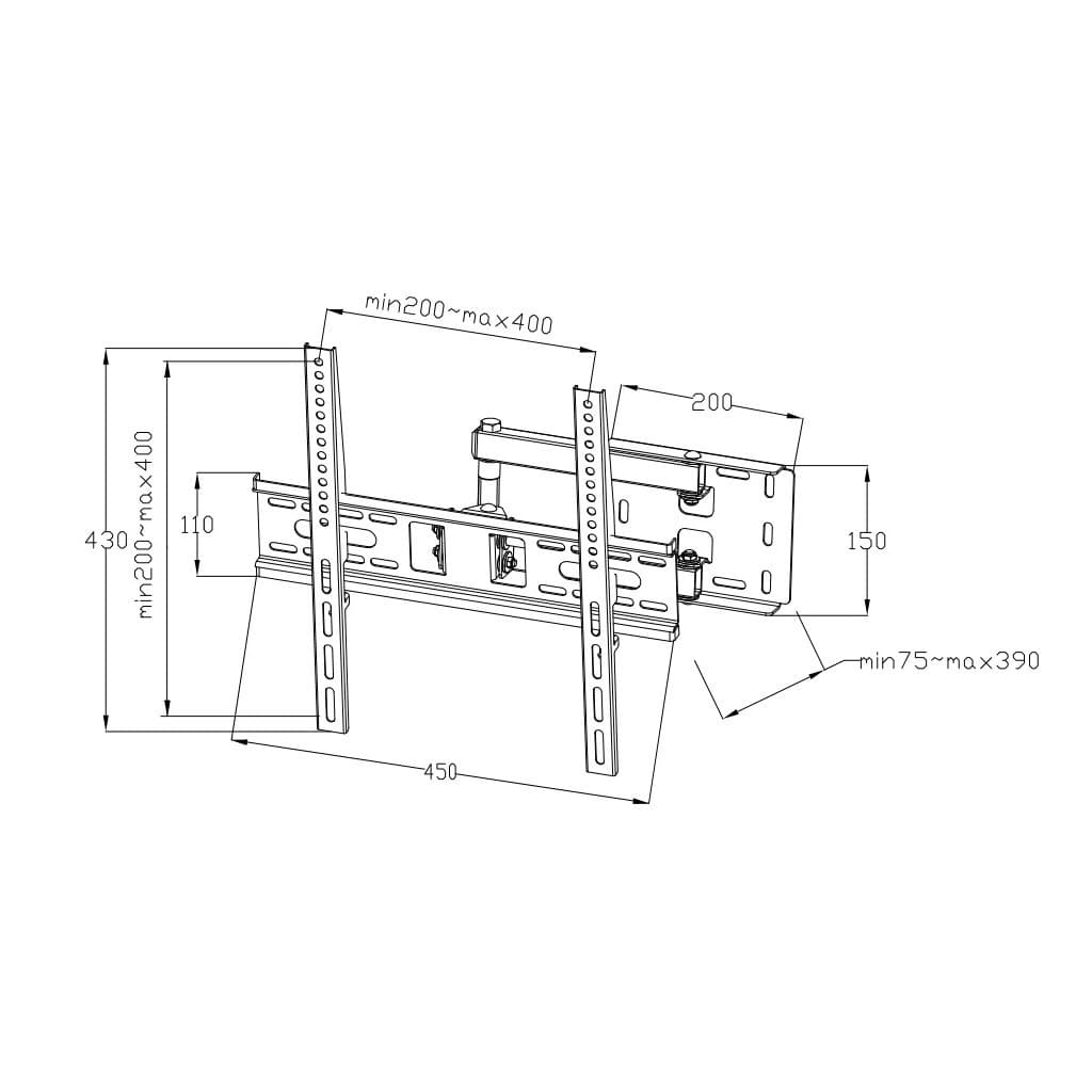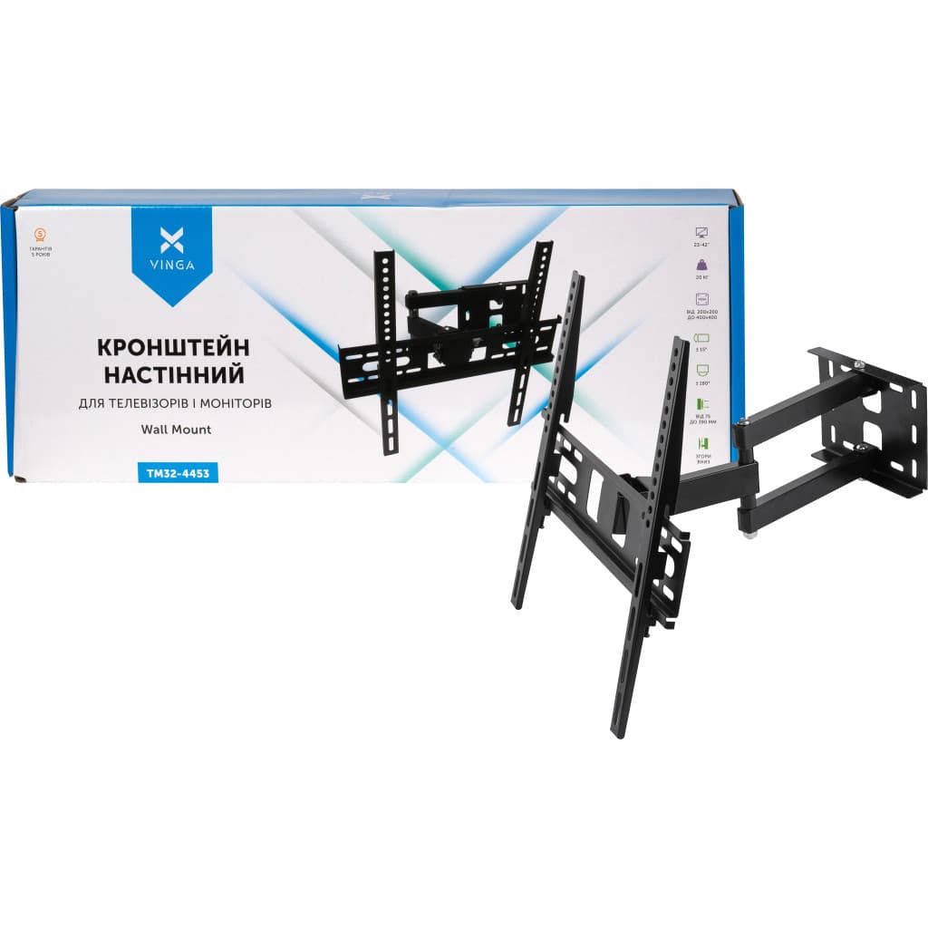 для телевізора, Тип - поворотно-похилий, кількість ступенів свободи - 4, мінімальна підтримувана діагональ - 23", максимальна підтримувана діагональ - 42", VESA - 200 x 200, 200 x 300, 300 x 200, 200 x 400, 300 x 300, 400 x 200, 400 x 300, 400 x 400, Максимальне навантаження - 20 кг, Нахил - 15°, Поворот - 180°, відстань до стіни - 75-390 мм, інструкція, елементи кріплення, чорний