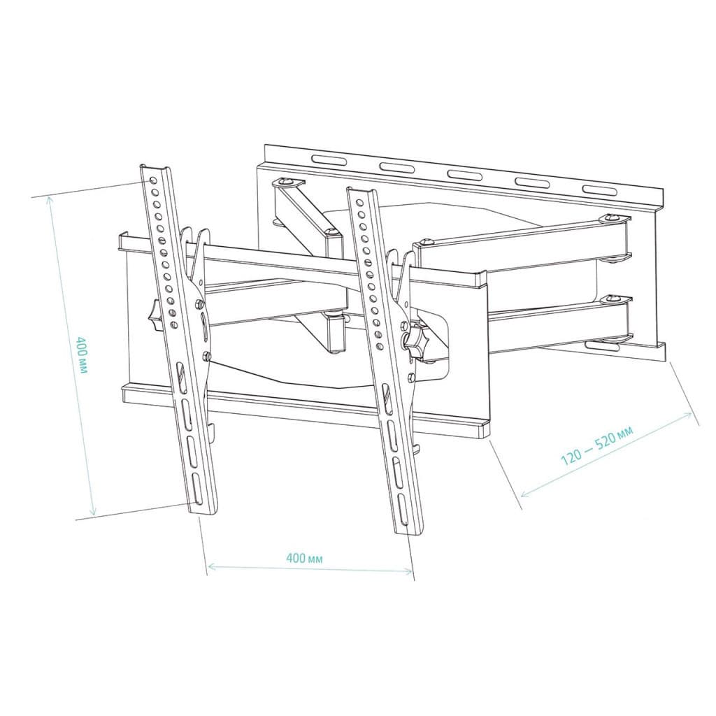 для телевізора, Тип - поворотно-похилий, кількість ступенів свободи - 4, мінімальна підтримувана діагональ - 23", максимальна підтримувана діагональ - 55", VESA - 200 x 200, 200 x 300, 300 x 200, 200 x 400, 300 x 300, 400 x 200, 400 x 400, Максимальне навантаження - 35 кг, Нахил - 15°, відстань до стіни - 120-520 мм, інструкція, елементи кріплення, чорний