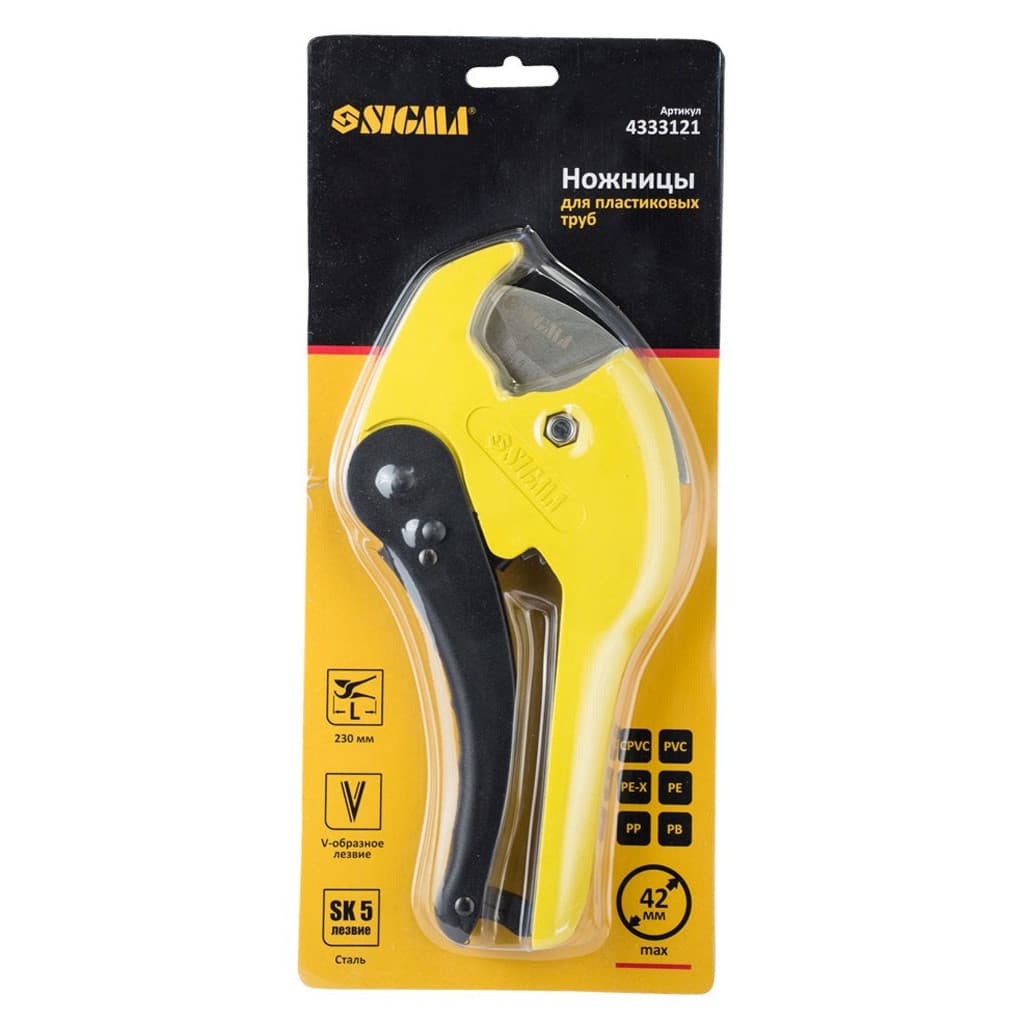 Труборіз Sigma для пластикових труб 0-42мм 230мм (сталь SK5) (4333121)