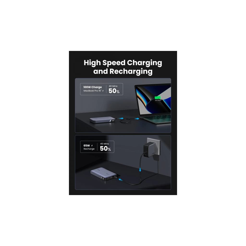 Батарея універсальна Ugreen 20000mAh 100W PD, QC, USB-A, 2xUSB-С Grey (PB720) (25188)