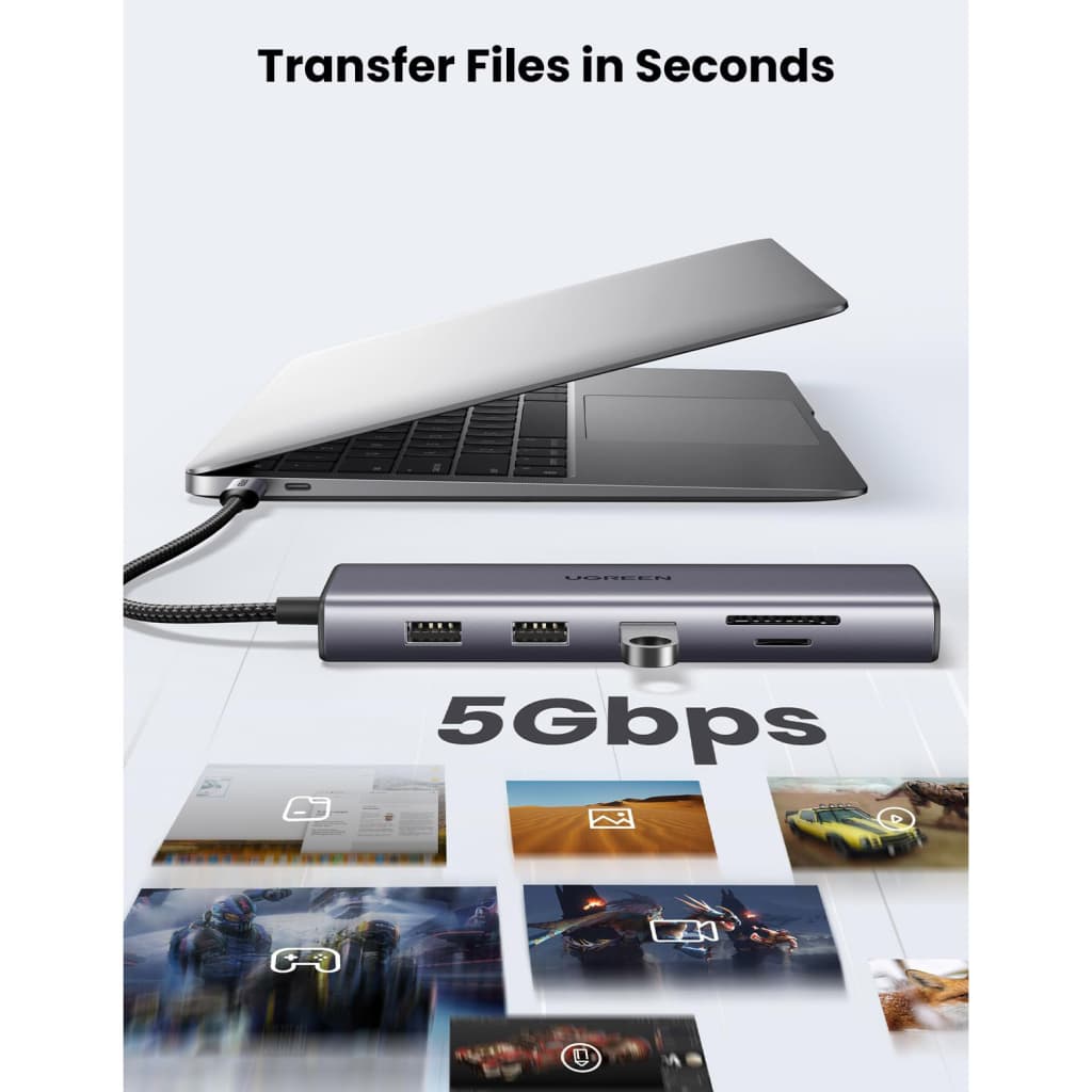 Тип - зовнішній, Інтерфейс підключення - USB Type-C, Вихідні роз'єми - 1 х RJ45, 1 x HDMI, VGA, 3 х USB 3.0, 3.5 mm (mini-jack), TF, SD, 1 x USB Type-C PD, Card reader, 4K@30Hz, 1920x1080@60Hz, PD100W, Також шукають - для MacBook