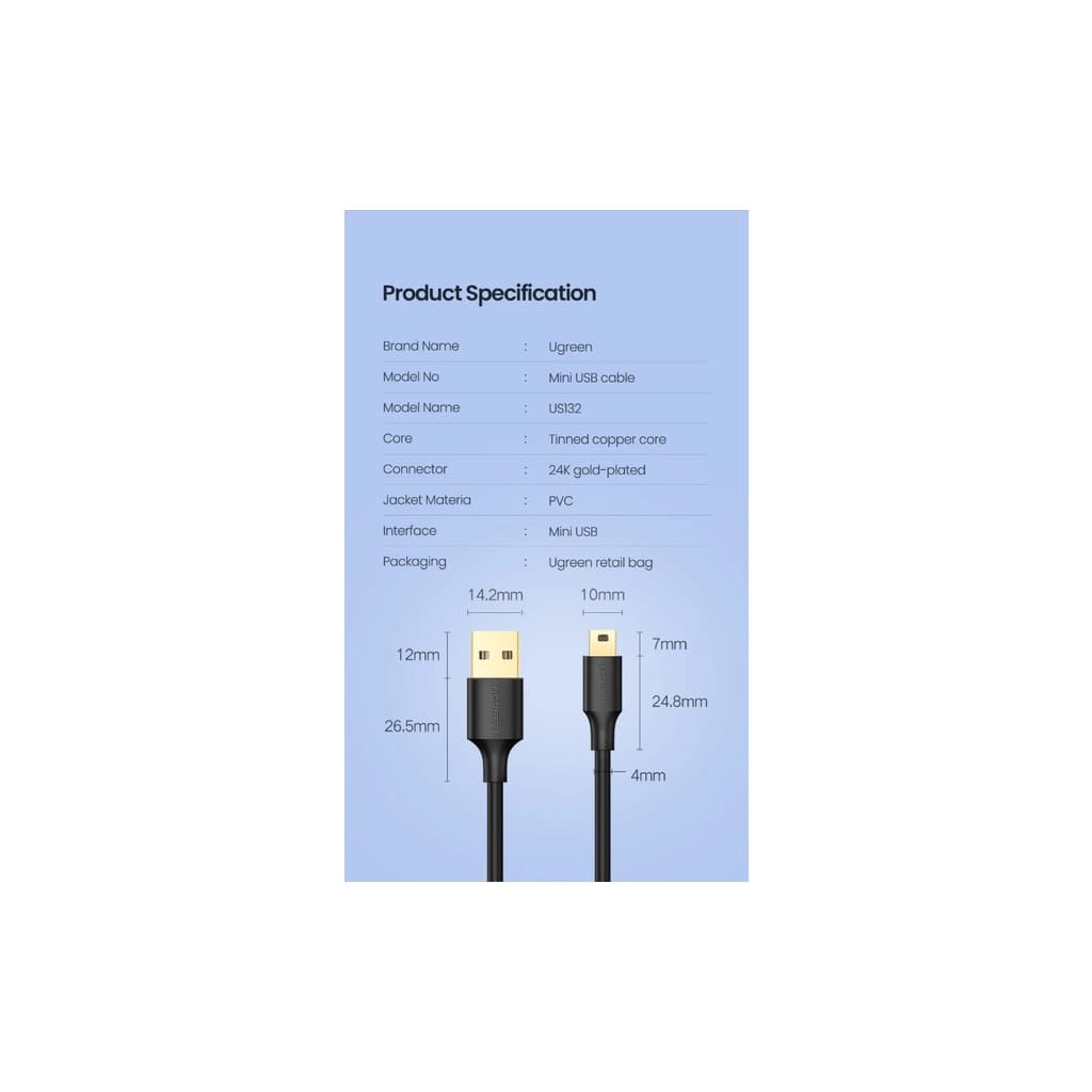 Дата кабель USB 2.0 AM to Mini 5P 1.0m US132 black Ugreen (10355)
