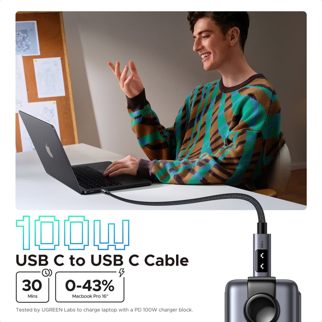 Дата кабель USB-C to USB-C 1.0m PD 100W L509 black Ugreen (35501)