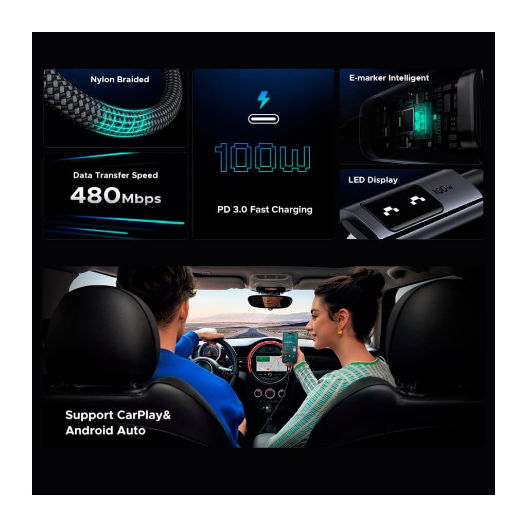 Тип - кабель, Тип конектора 1 - USB Type-C, Тип конектора 2 - USB Type-C, довжина - 1 м, 100 Вт, Колір - чорний