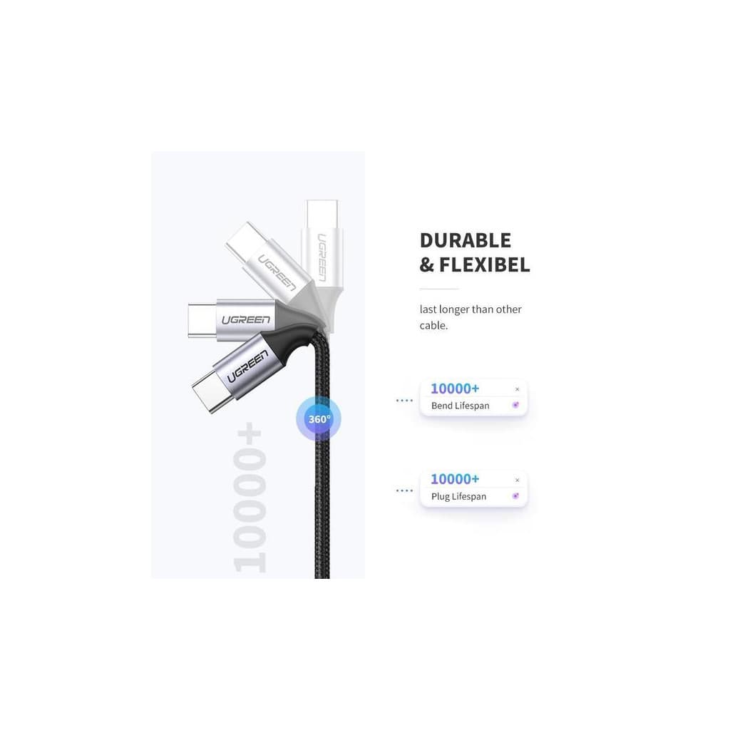 Дата кабель USB-C to USB-C 1.0m US261 3A Alum. Braid Gray\Black Ugreen (50150)
