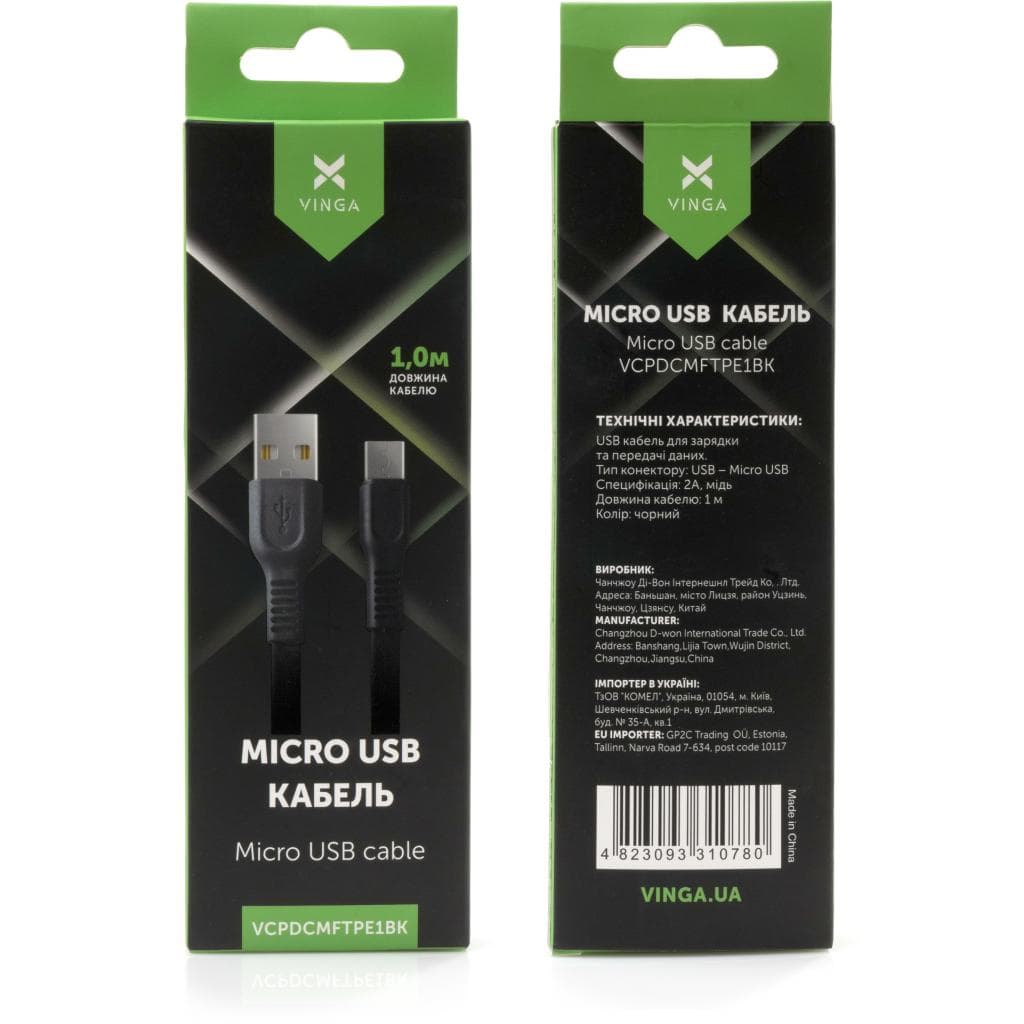 Дата кабель USB 2.0 AM to Micro 5P 1.0m flat art TPE back Vinga (VCPDCMFTPE1BK)