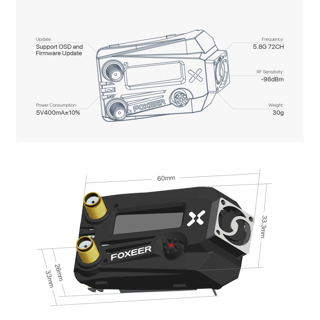 Відеоприймач (VRX) Foxeer WildFire 5.8GHz 72CH Black (MR1622)