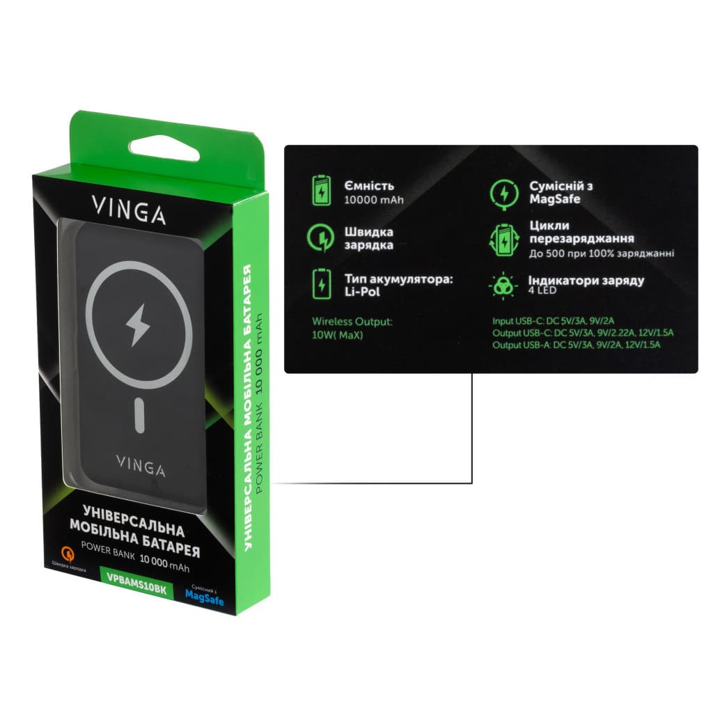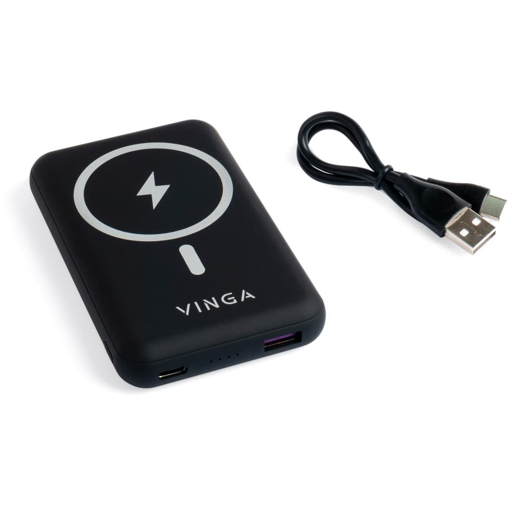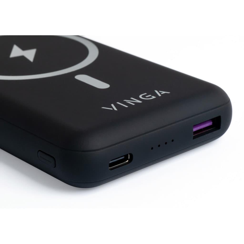 Батарея універсальна Vinga 10000 mAh Wireless Magnetic QC+PD (VPBAMS10BK)