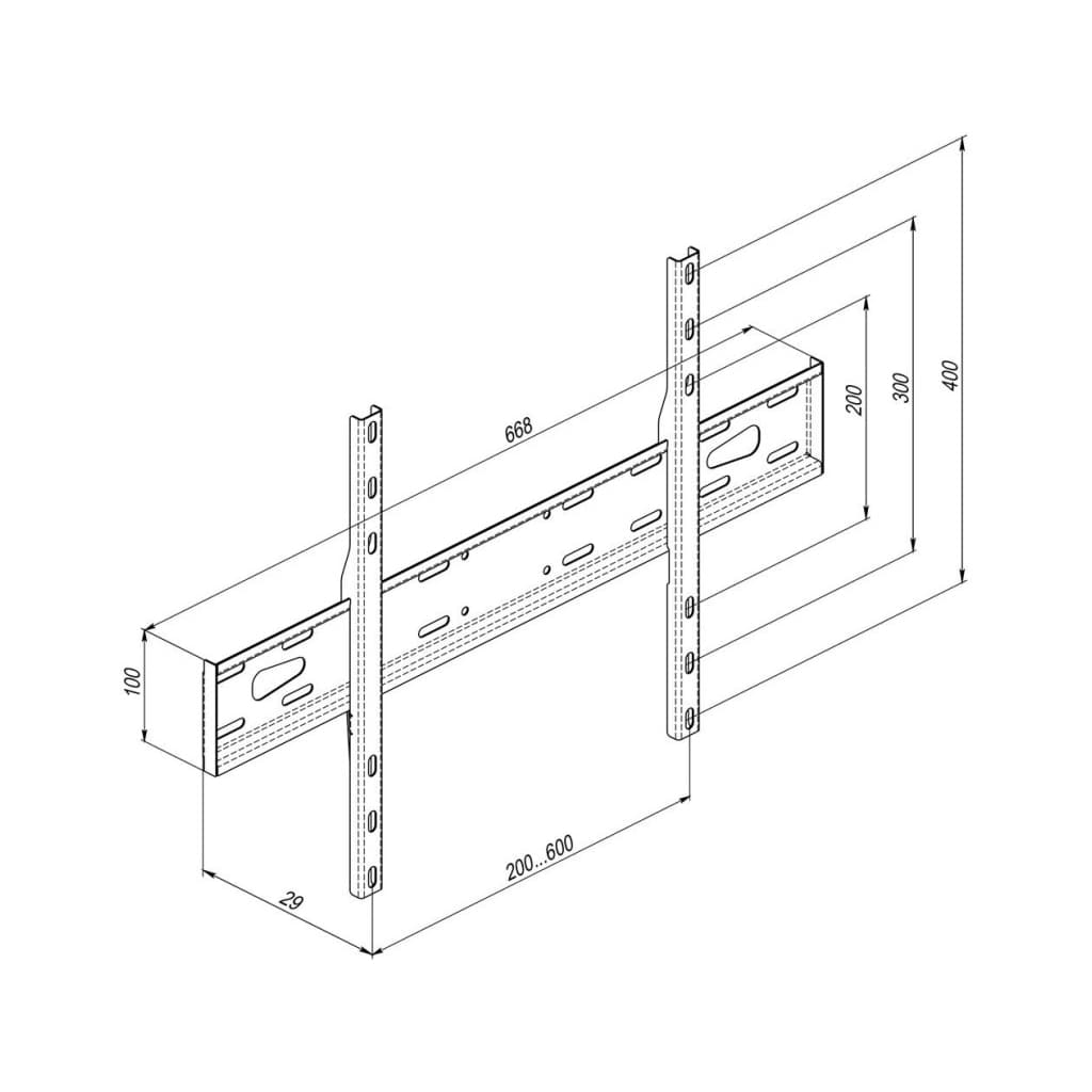 для телевізора, Тип - фіксований, кількість ступенів свободи - 0, мінімальна підтримувана діагональ - 40", максимальна підтримувана діагональ - 80", VESA - 200 x 200, 200 x 300, 300 x 200, 200 x 400, 300 x 300, 400 x 200, 400 x 300, 400 x 400, 600 x 200, 600 x 300, 600 x 400, 300 x 400, Максимальне навантаження - 35 кг, гвинт 8 х 80 (8 шт.), чорний