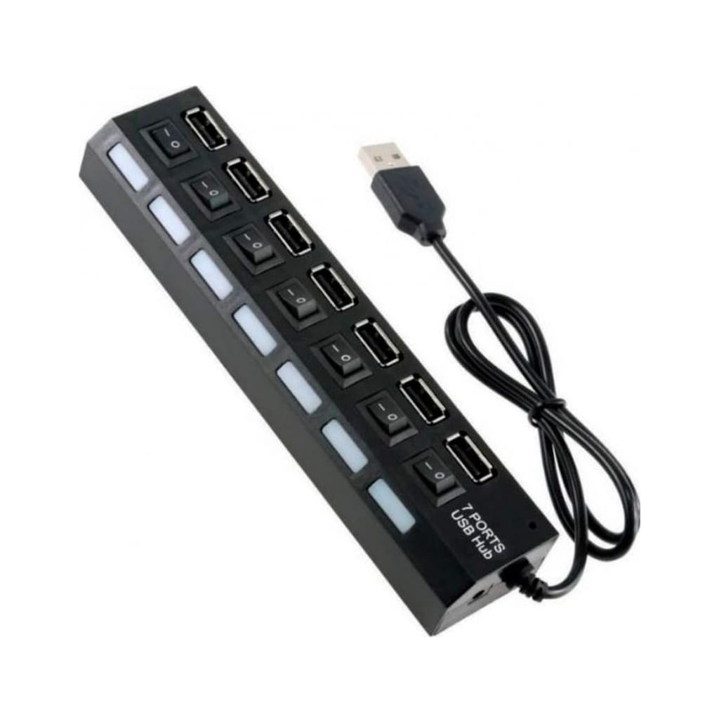 Тип - зовнішній, Інтерфейс підключення - USB 2.0, Вихідні роз'єми - 7 x USB 2.0, вимикач на кожен порт, швидкість до 480 Мбіт/сек, LED підсвітка портів