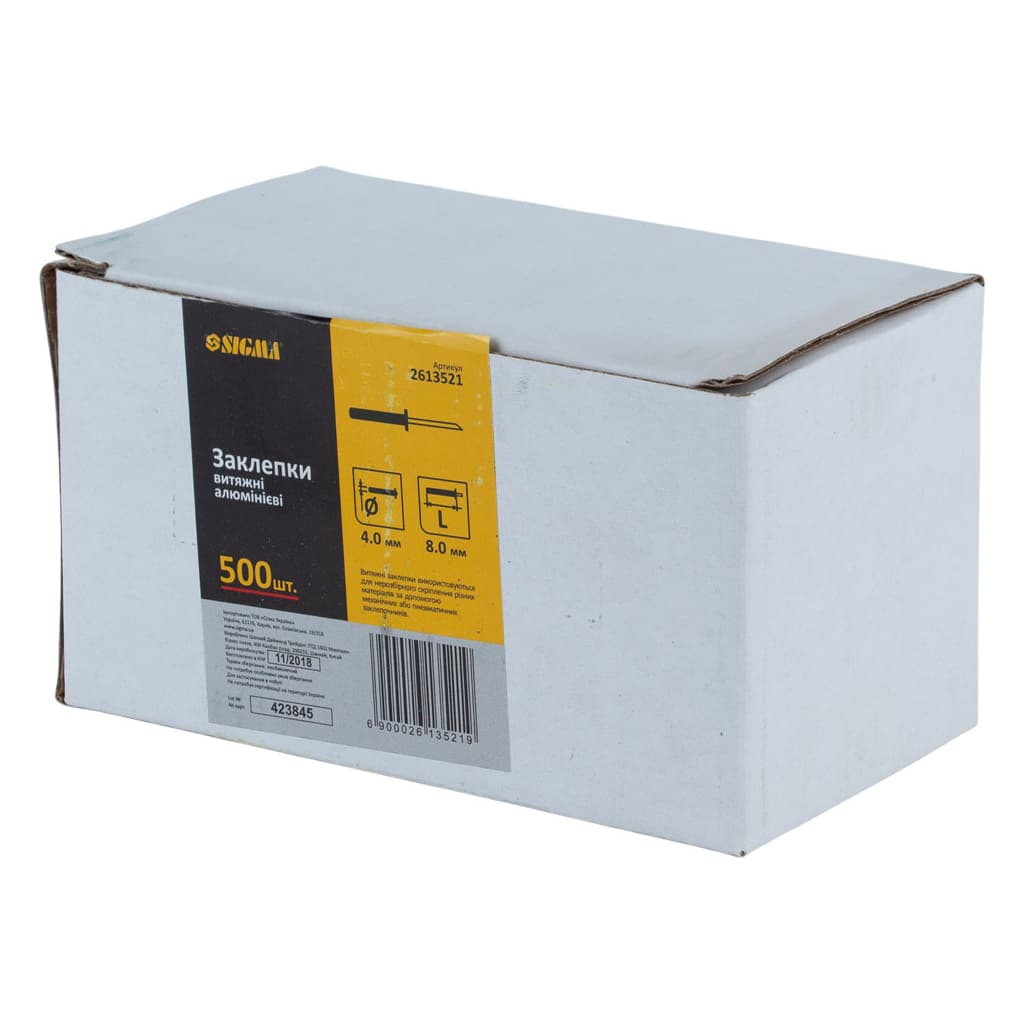 Заклепки Sigma алюмінієві Standard 4.0x8.0мм 500шт (2613521)