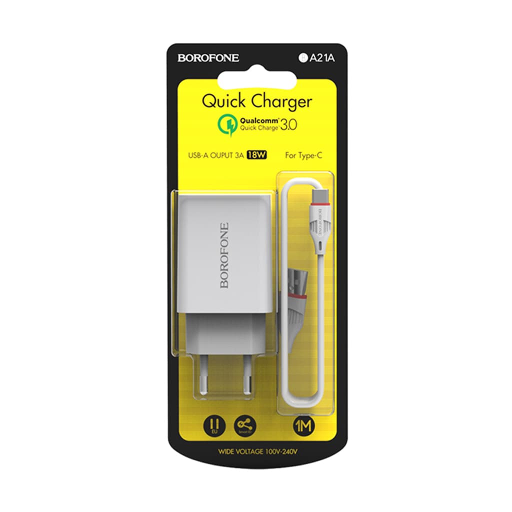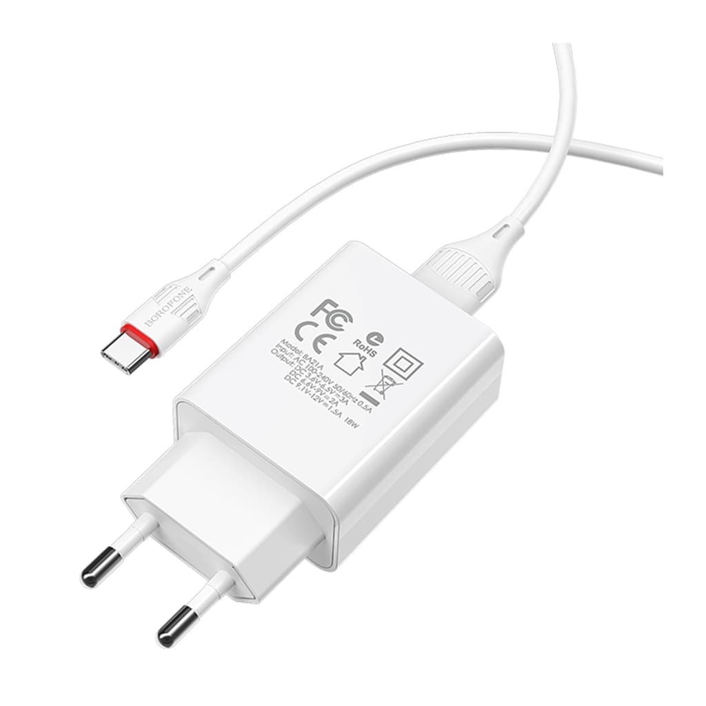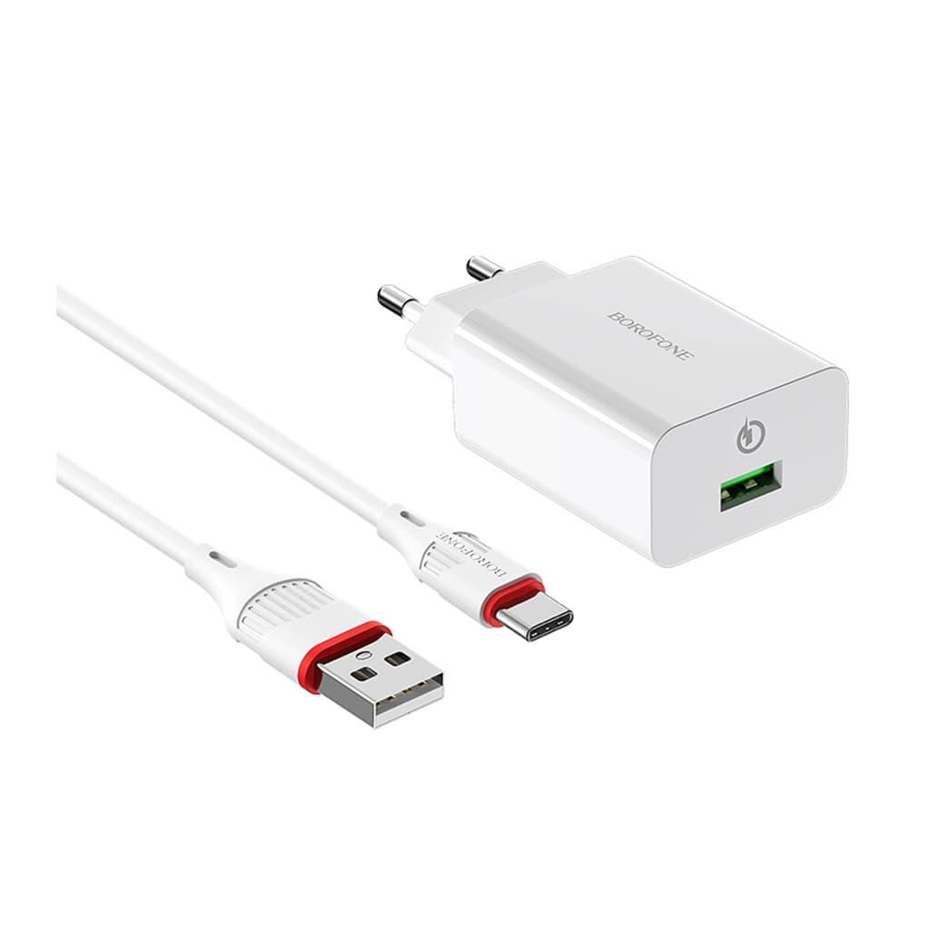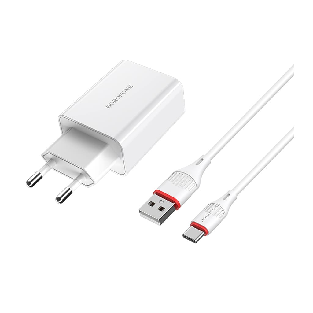 Зарядний пристрій BOROFONE BA21A USB + cable USB to USB-C 15W White (BA21A/TCW)