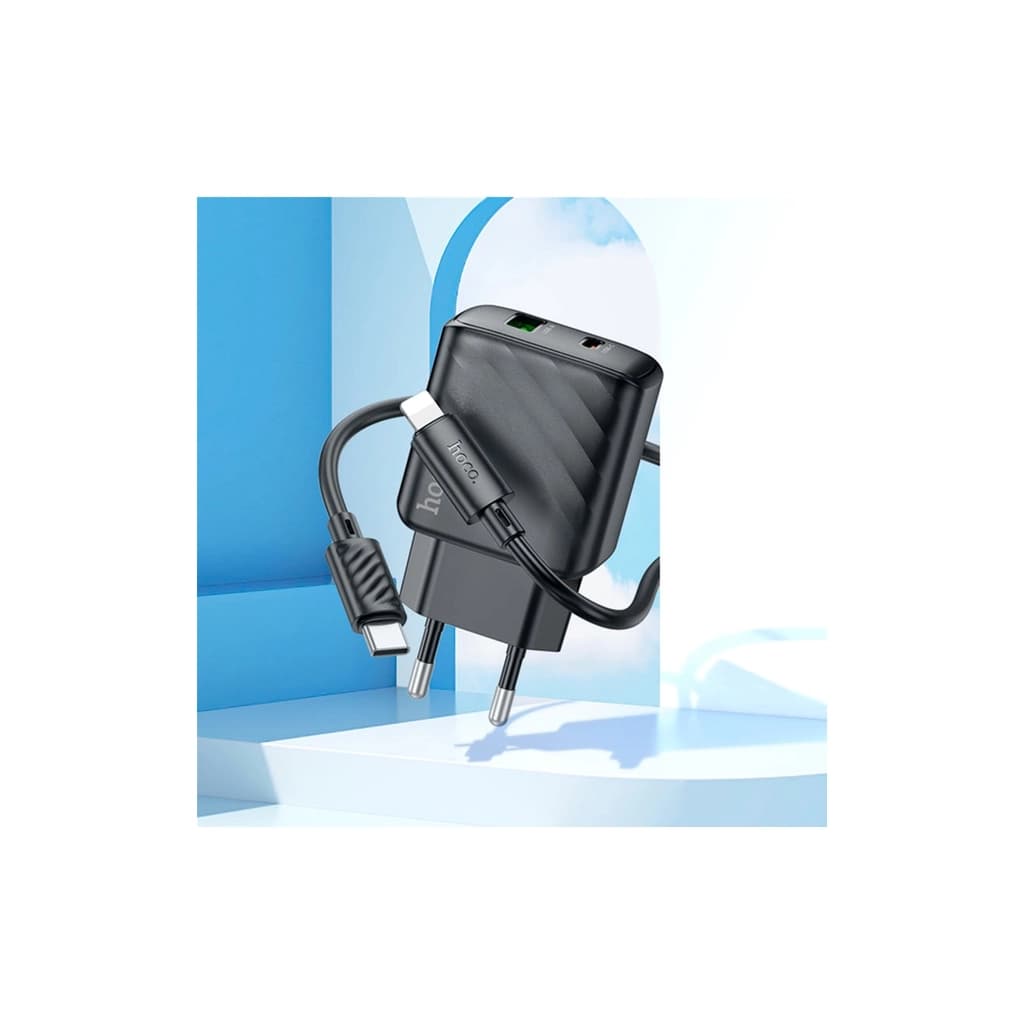 Зарядний пристрій HOCO CS23A USB-C PD30W + 1xUSB QC3.0 + cable USB-C to Lightning black (6942007609951) | General Security