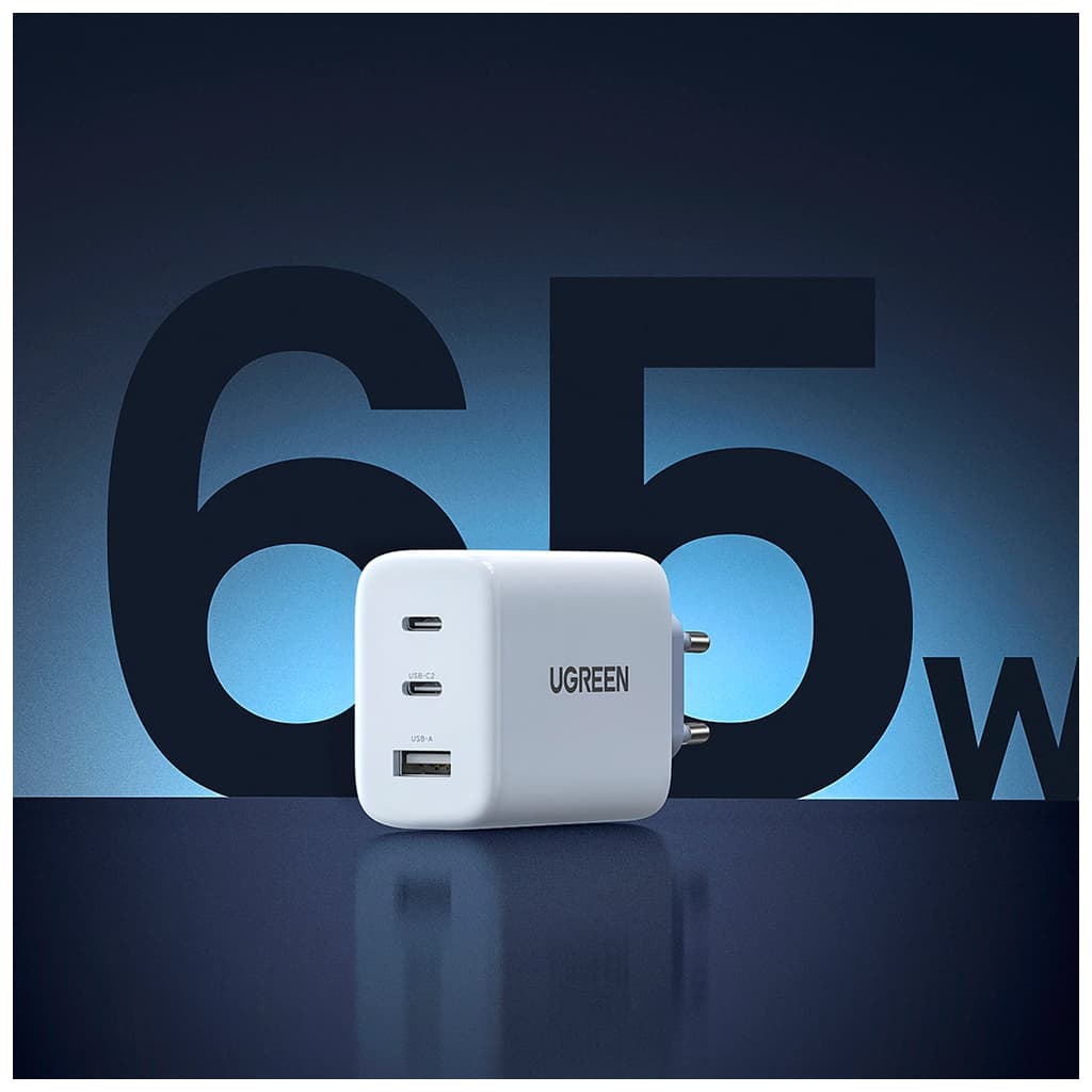 Зарядний пристрій Ugreen 3xUSB 65W (2xType-C+USB QC3.0) Fast Charger White CD275 (90496)