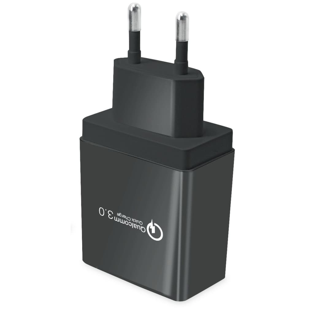 Тип - адаптер, Живлення - мережа, Призначення - універсальне, тип вихідного підключення - USB, Max - 5.1 A, 18 Вт, кількість USB портів - 3 x USB, швидка зарядка - Quick Charge 3.0, чорний