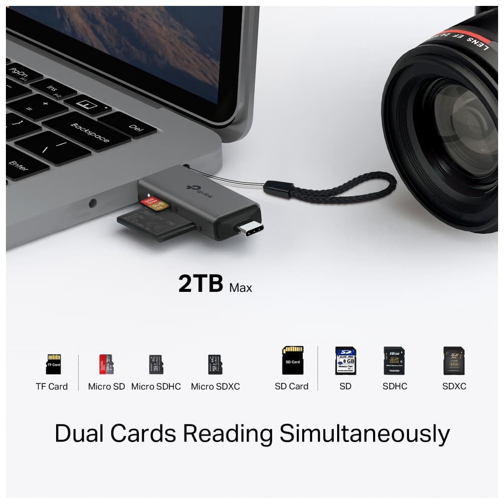 Зчитувач флеш-карт TP-Link USB-C + USB 2.0 SD + TF silver (UA430D)