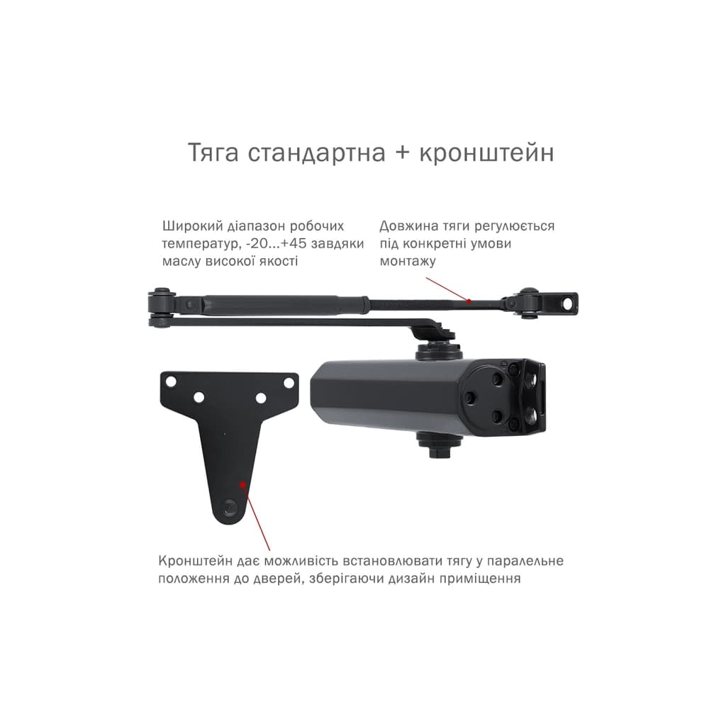 Тип штанги - колінчаста, складна тяга, 100 кг, -20 ~ +45 °C, алюмінієвий сплав, сталь