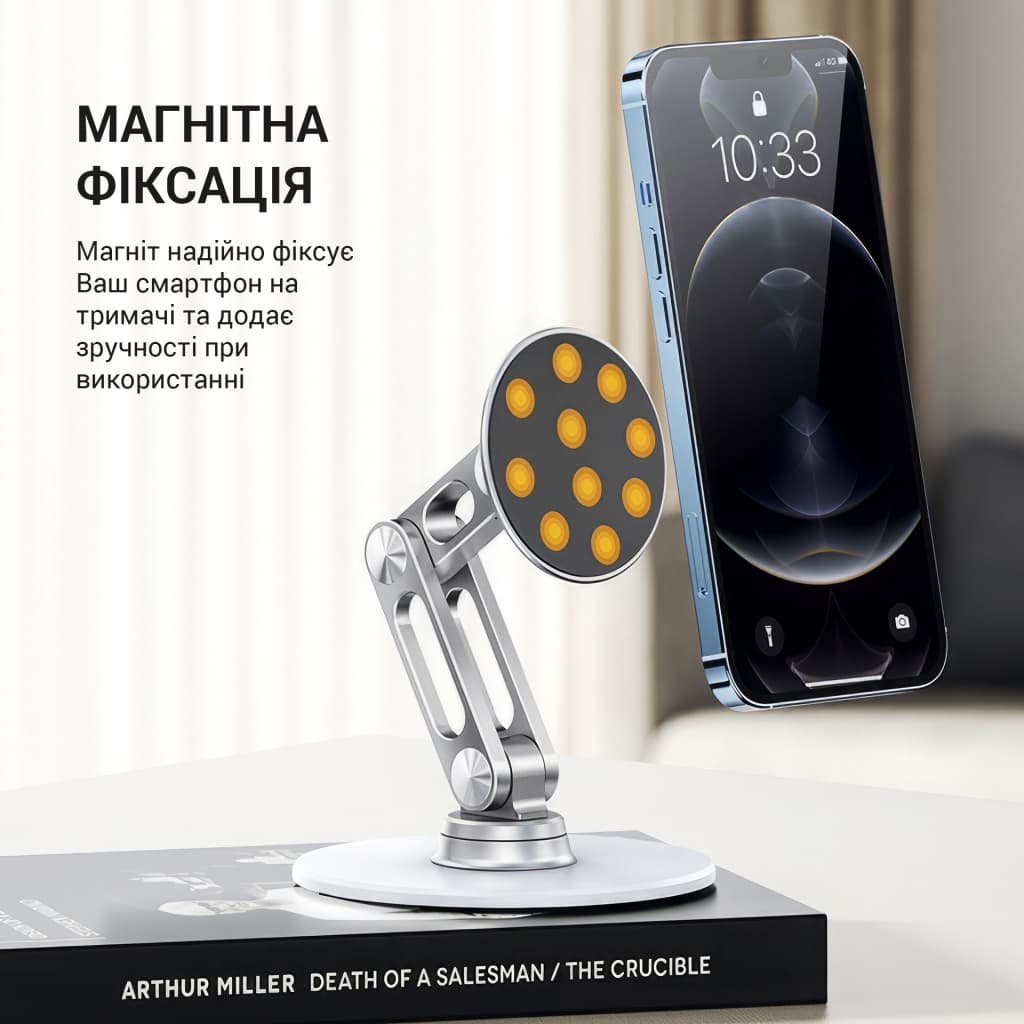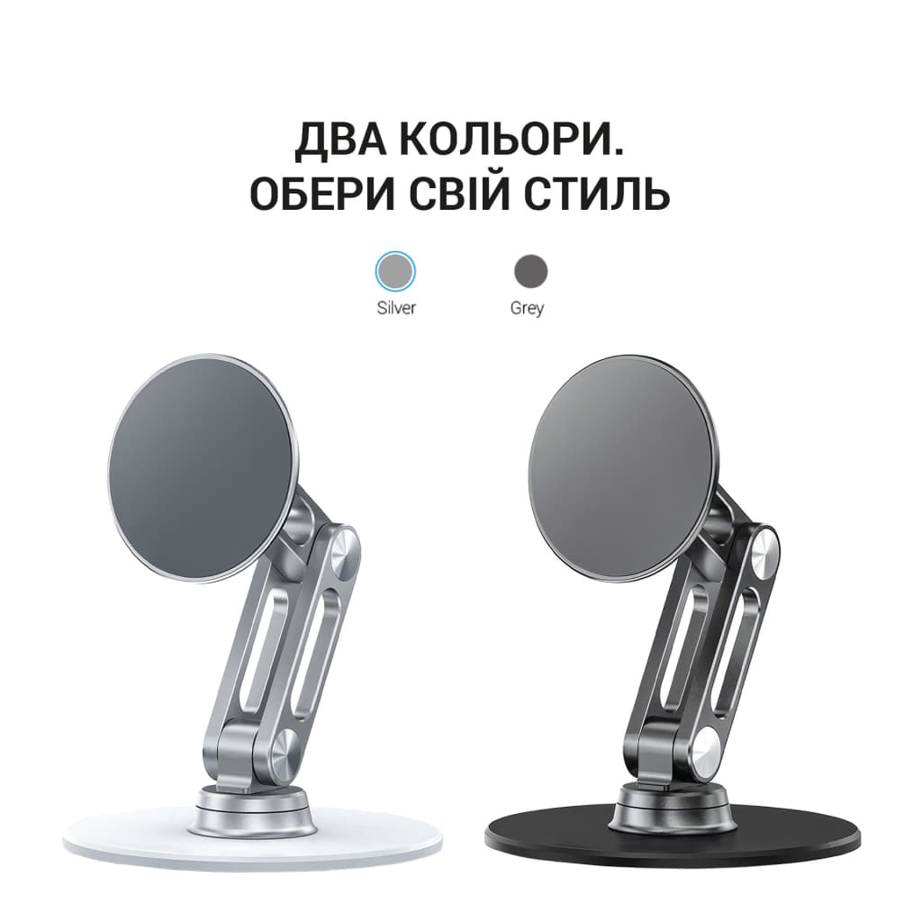 Колір - сріблястий, Сумісність - універсальна, розмір - 177 х 100 х 61 мм, Особливості - регулювання кута нахилу, магнітний тримач